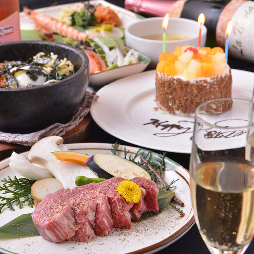 松永特選ロース・松永特選カルビ・松永シャトーブリアンが味わえるスペシャルなコースです。 ※飲み放題は+¥3,000、ホールケーキのご注文+¥2,000円~承ります。